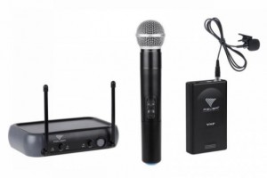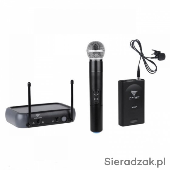 Zestaw bezprzewodowy składający się z mikrofonu do ręki i mikrofonu na klip Azusa JS-268V.