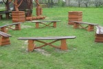 Ławka ogrodowa wykonana jest z bali oraz desek brzozowych. Z kolei siedzisko ławki wykonujemy z desek brzozowych gr. 38 mm. Ławki są dwukrotnie impregnowane Drewnochronem w wybranym przez klienta kolorze. Istnieje możliwość wykonania zdobień na ławkach.