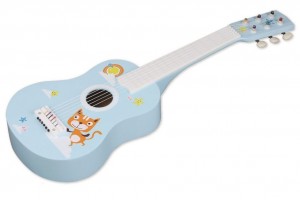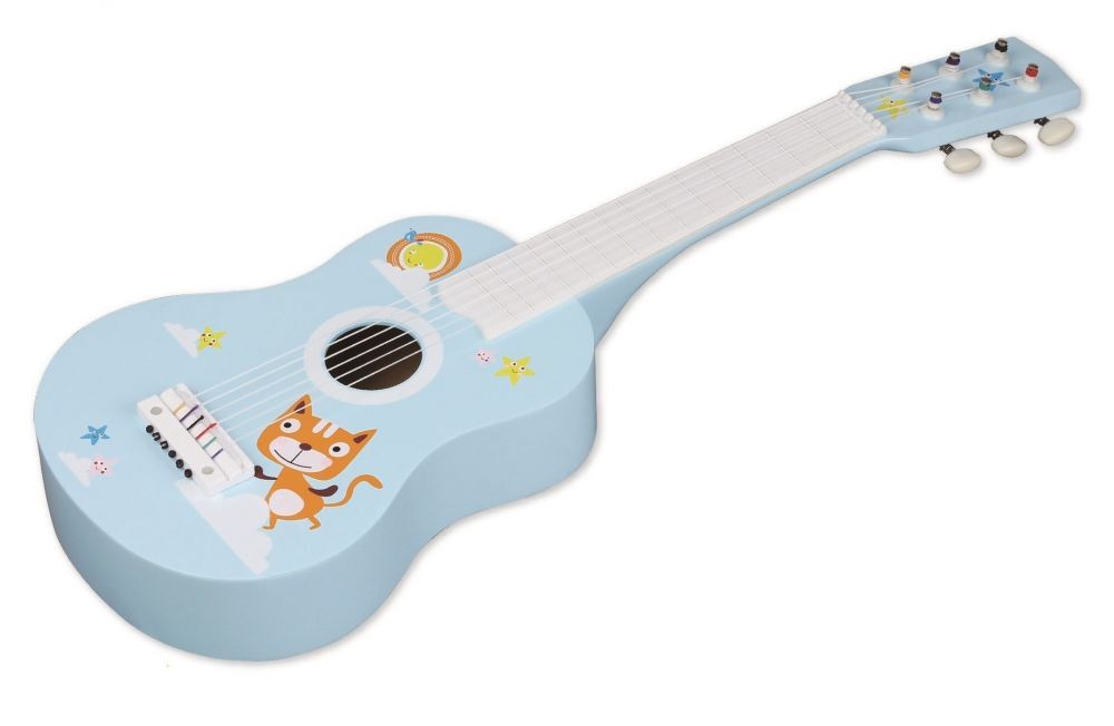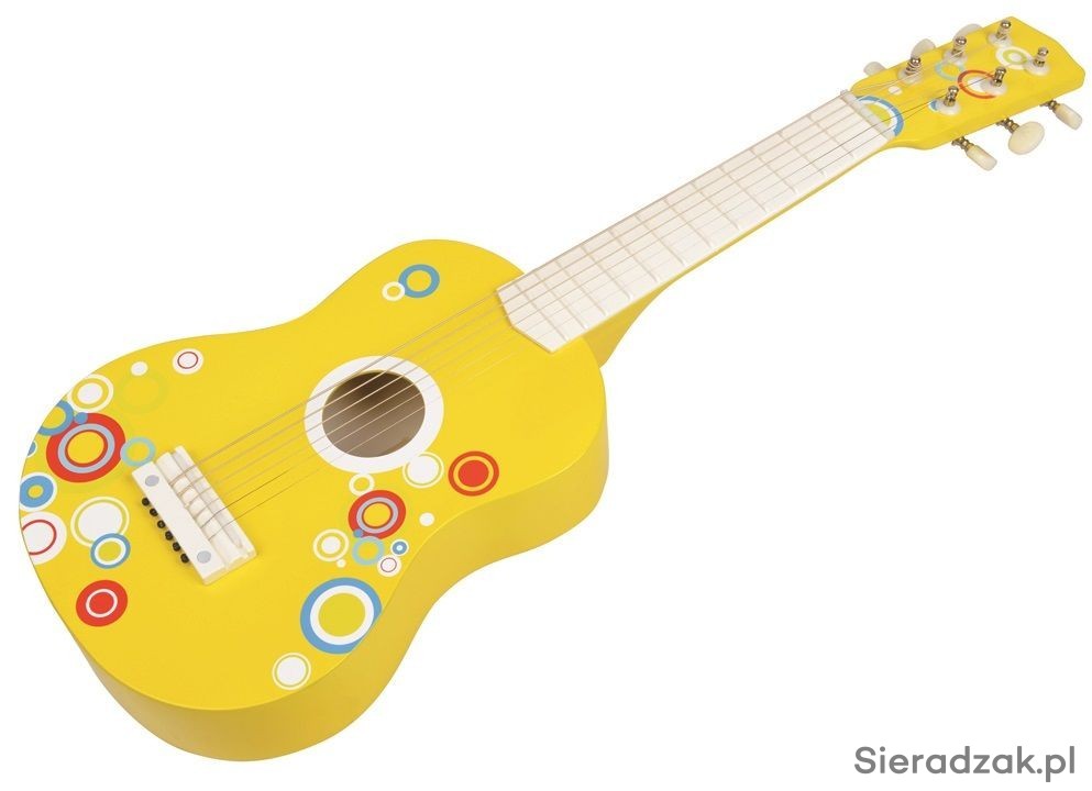 Kolorowa drewniana 6-cio strunowa gitara to idealny instrument dla najmłodszych muzyków.