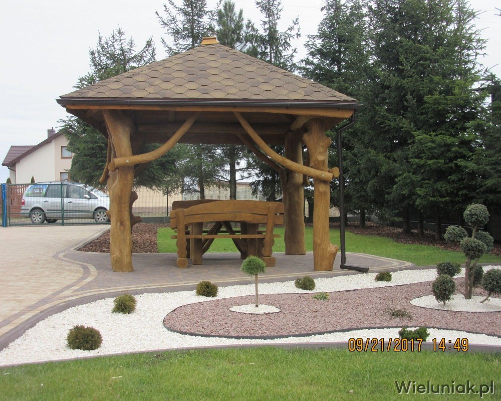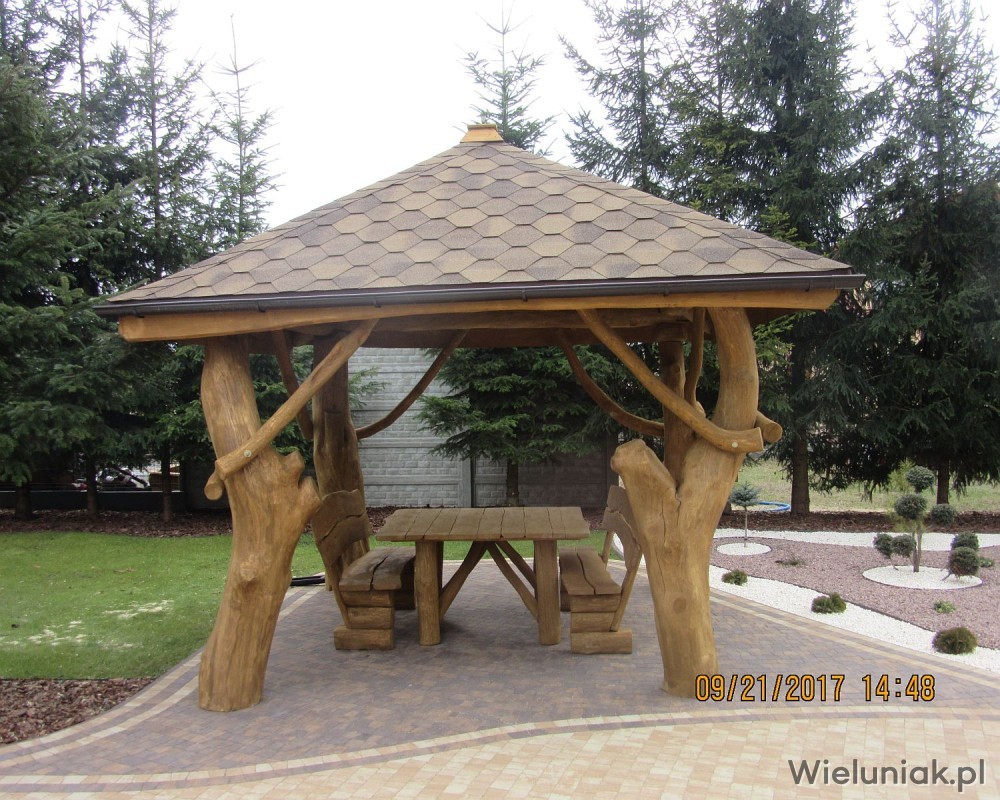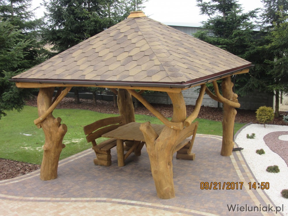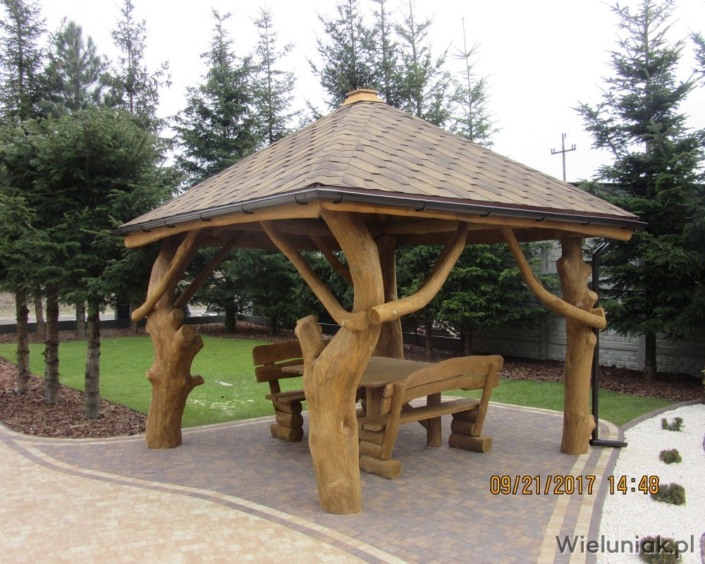 1. Elementy altany wykonane z pni drzew korowanych, suchych, wyszlifowanych, zaimpregnowanych.
