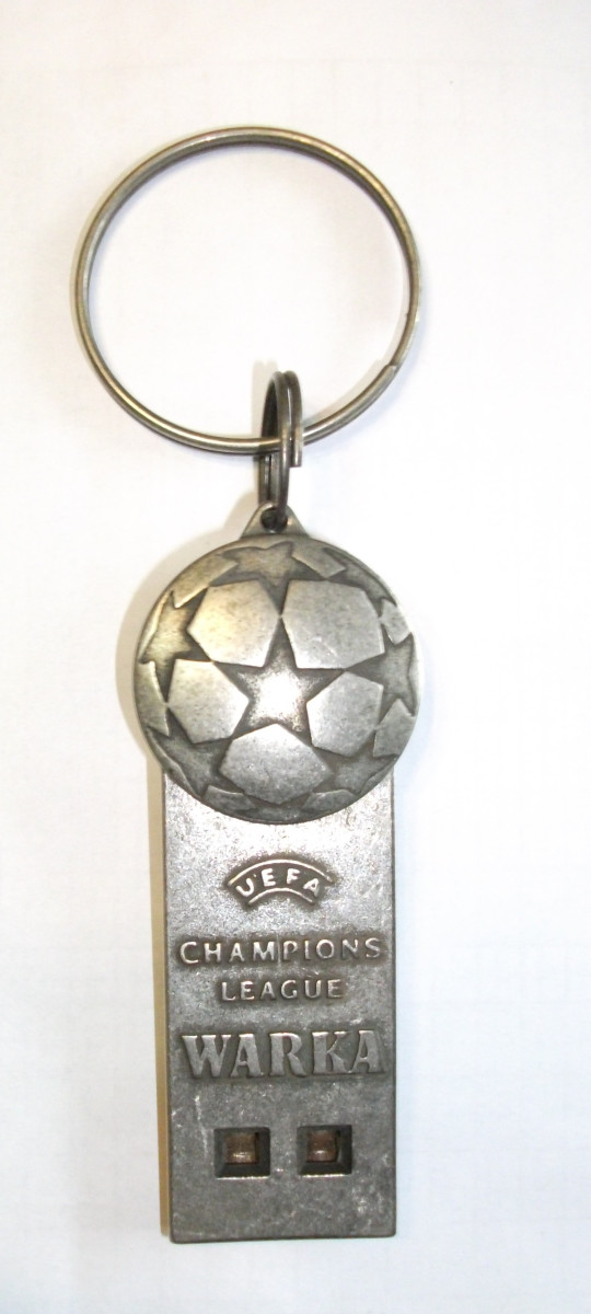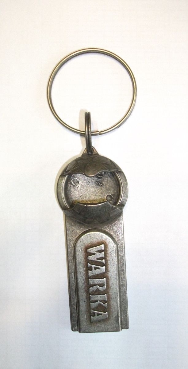 Opis i dane breloka "Warka" - materiał: stal z dodatkiem cyny, nie śniedzieje, nie rdzewieje i nie utlenia się. Posiada 2 funkcje b. ważne dla kibica: otwieracz do piwa i dwutonowy gwizdek. - dł. 80 mm - szer. 25 do 32 mm - grubość 7 do 14 mm. Cena to 9 zł za 1 szt.