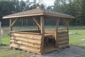 1.Słupy altany wykonane z bali z możliwą naturalną krzywizną o średnicy ok. 16 cm.