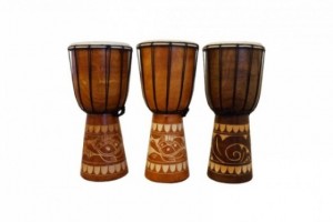 Bęben wykonany z jednego kawałka drewna, dociągany ocynkowaną obręczą. Membrana wykonana z koziej skóry.