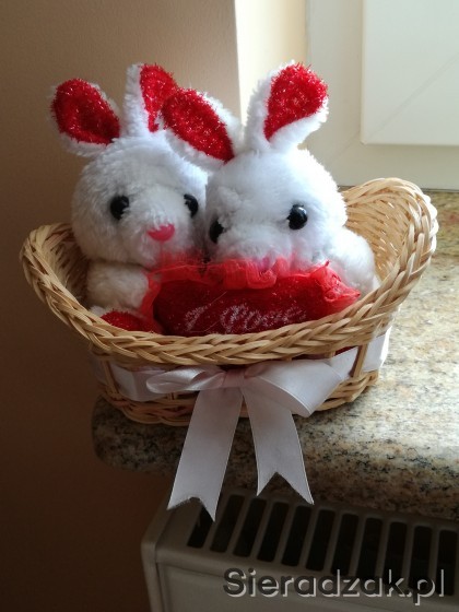 Do sprzedania zajączki w koszyczku z serduszkiem.