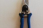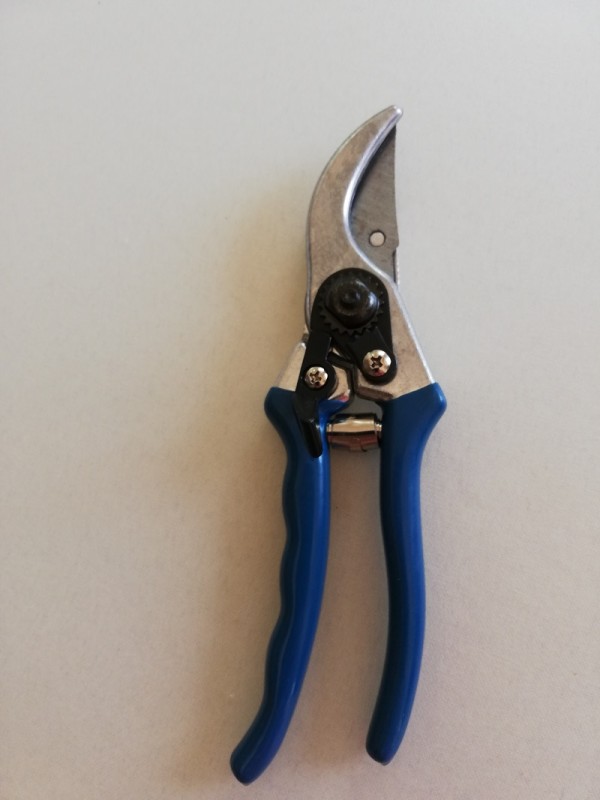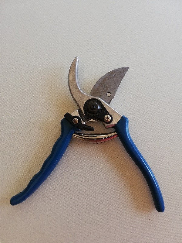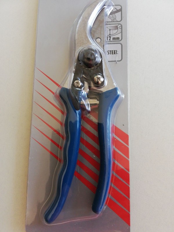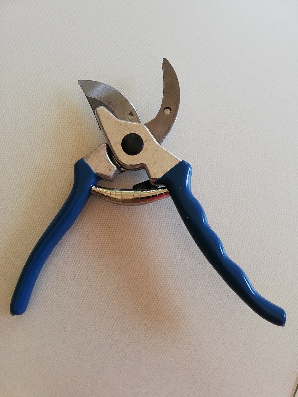Sekator ogrodowy z ostrzem wykonanym ze stali.