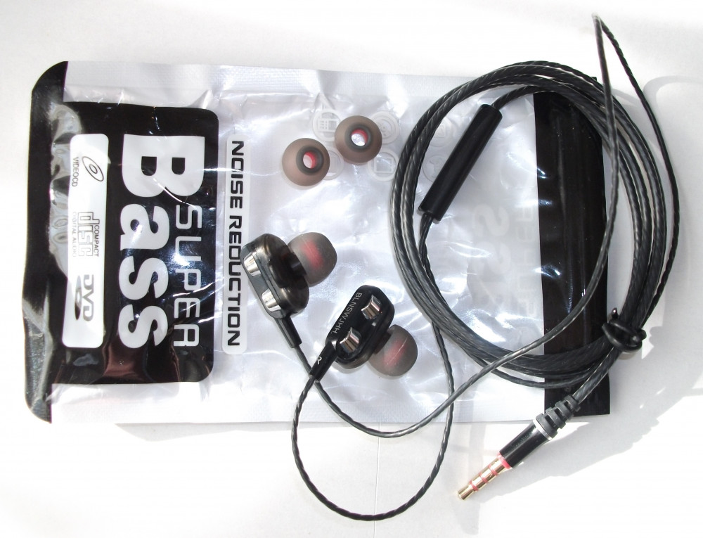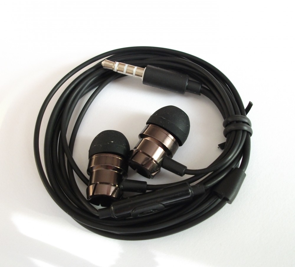 Metalowe słuchawki stereo Super Bass z mikrofonem i sterowaniem na kablu