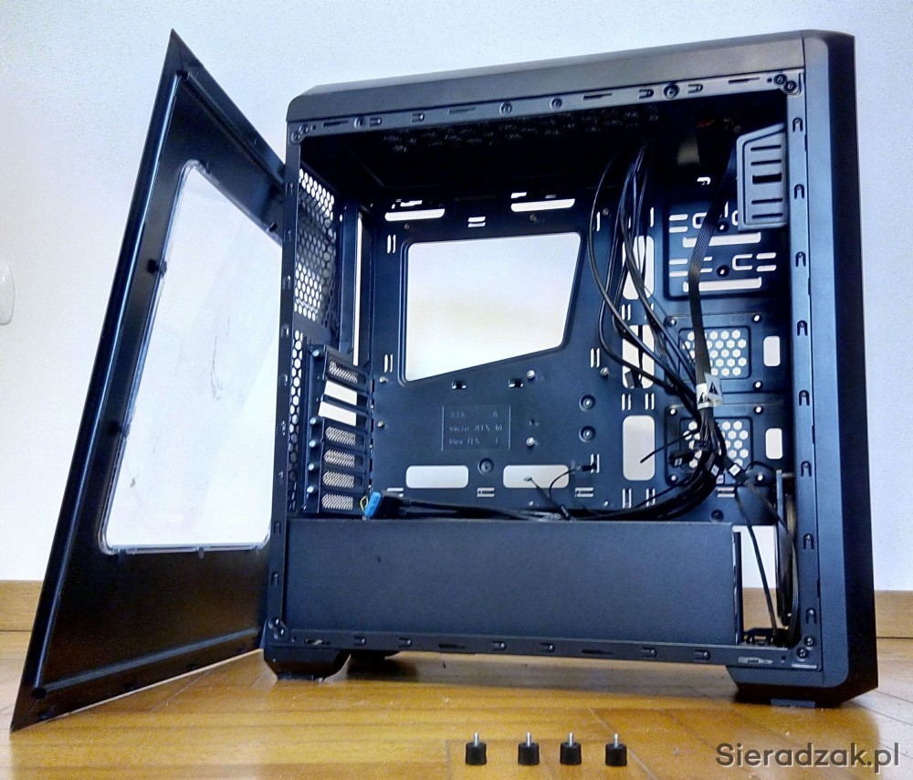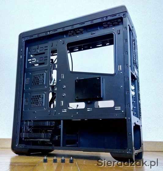Szuflada na zasilacz i wyciąg od spodu obudowy filtr przeciwpyłowy.