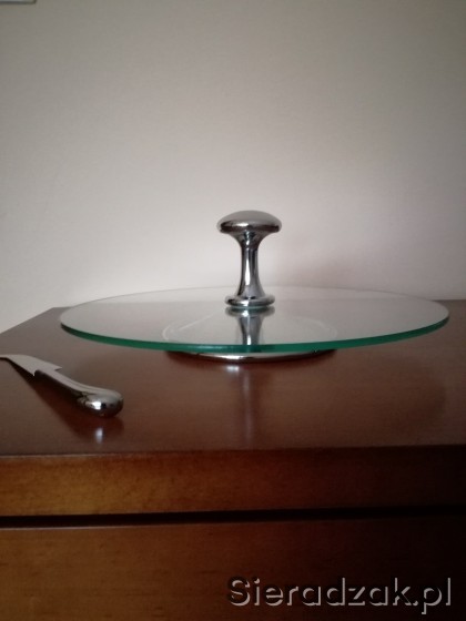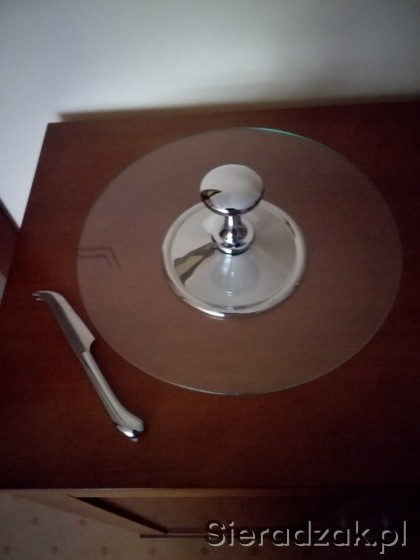 Sprzedam nową tacę paterę szklaną okrągłą z nożykiem.
