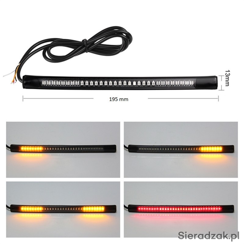 Listwa posiada 3 funkcje: światło pozycyjne, światło stop i kierunkowskazy.