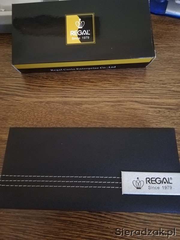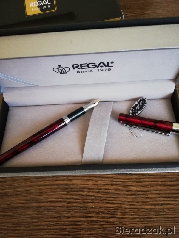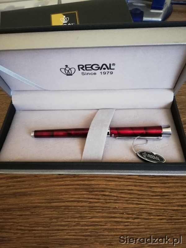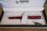 Eleganckie pióro REGAL RE10P ze srebrno - złotą stalówką (1,8 x 0,8 cm), ozdobioną grawerem z emblematem marki Regal.