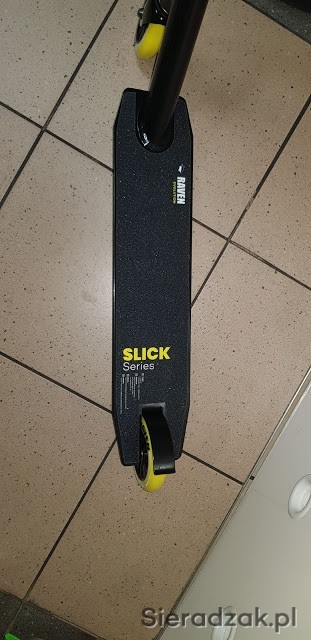 Hulajnoga Evolution Slick Series została stworzona jako wyczynowy model przeznaczony do jazdy freestylowej. Zastosowanie odpowiednich stopów aluminium oraz stali pozwoliło zapewnić niezwykłą sztywność i trwałość konstrukcji przy zachowaniu niskiej wagi. Kierownica wykonana ze stali węglowej pozwala na swobodne wykonanie różnych, najtrudniejszych nawet ewolucji w tym obrotów o 360 stopni. Zastosowanie potrójnego mocowania pierścienia kierownicy pozwala na bardzo dynamiczną i agresywną jazdę.
