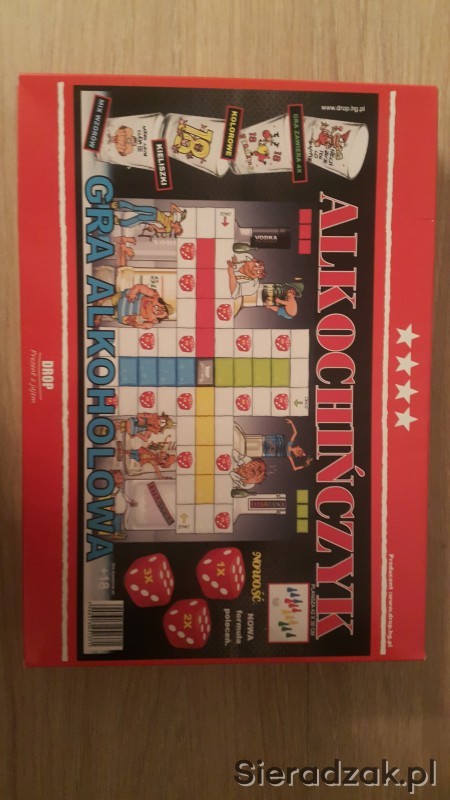 Witam sprzedam nowa grę alkochinczyk dla dorosłych. W grę nigdy się nie grało .W środku jest plansza, kieliszki, pionki i kostka.Mozliwa wysylka.