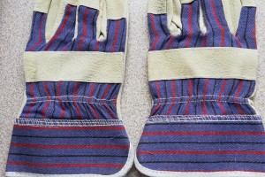 Do sprzedania rękawice robocze drelichowe wzmacniane skórą.