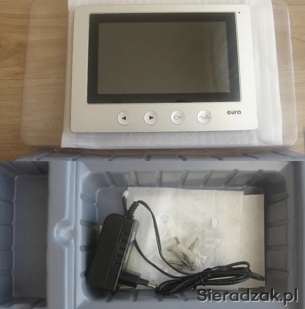 Sprzęt nie był praktycznie używany (na chwilę powieszony został na ścianie, a potem przeleżał w pudełku). Wykorzystałem samą kasetę zewnętrzną (której nie sprzedaję!), a monitor ze względu na niedopasowanie do wizualizacji przestrzeni w domu wymieniłem na inny.
