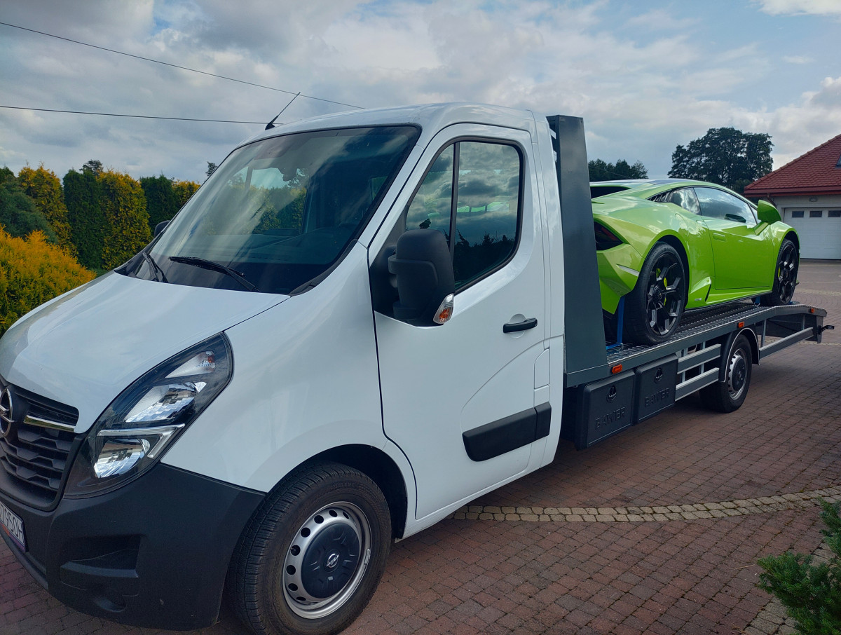 Do wynajęcia autolaweta Opel Movano B 2.3dci 180KM, euro 6, wyposażone w klimatyzację, nawigację z carPlay, tempomat, pneumatyczne zawieszenie, wyciągarkę, pasy transportowe, przedłużki najazdów Brak limitu kilometrów. Tel kont. 667886448, 606464623