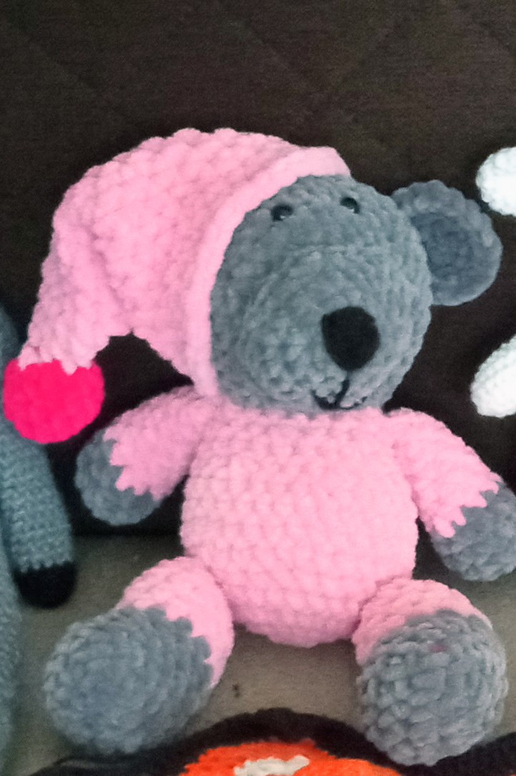 Witam. Mam do sprzedania zrobionego na szydełku misia z czapeczka. Zrobiony jest z wełny aksamitka. Możliwość również odbioru w Sieradzu.