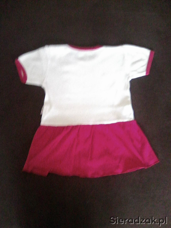 Sprzedam body dziewczęce z falbanką imitującą spódniczkę rozmiar 80. Kolor biały z ciemnoróżową falbanką. Stan bardzo dobry.