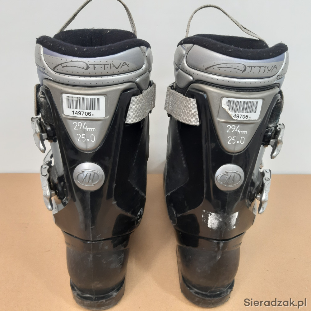 używane buty narciarskie w rozmiarze 38,długość wkładki wewnętrznej 25cm,4 klamry z micro regulacją,długość skorupy buta 294mm.stan dobry.