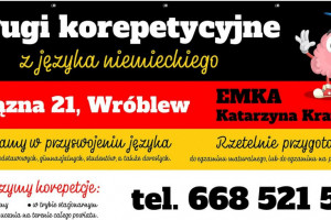 Zapraszam do współpracy uczniów szkół podstawowych, średnich oraz studentów i dorosłych. Pomogę przyswoić i opanować język niemiecki. Postaram się Was przekonać, że "Deutsch" nie jest taki straszny, jak się wydaje. Z zawodu jestem nauczycielem języka niemieckiego i obecnie pracuję w dwóch szkołach. Ukończyłam specjalizację pedagogiczną, posiadam umiejętności metodyczne. Pomagam także w dokładnym przygotowaniu do matury. Najmłodsze dzieci nauczam w sposób kreatywny, przy pomocy gier i zabaw. Miejsce udzielenie usług Drzązna w gminie Wróblew (7km od Sieradza). Cena 70 zł za godzinę. Możliwe jest także przeprowadzanie lekcji w systemie zdalnym. Serdecznie zapraszam