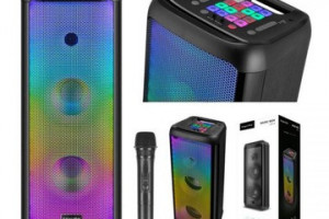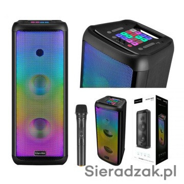 Jedną z największych zalet tego głośnika przenośnego są 2 wejścia mikrofonowe, które pozwolą Ci zorganizować imprezę karaoke. Co więcej, w zestawie znalazł się mikrofon, dlatego nie musisz inwestować w dodatkowy sprzęt.