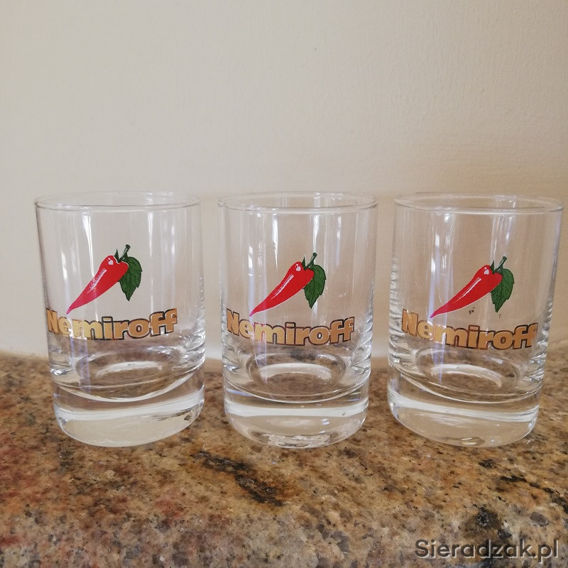Zestaw 3 szt oryginalnych kieliszków do wódki Nemiroff. NOWE