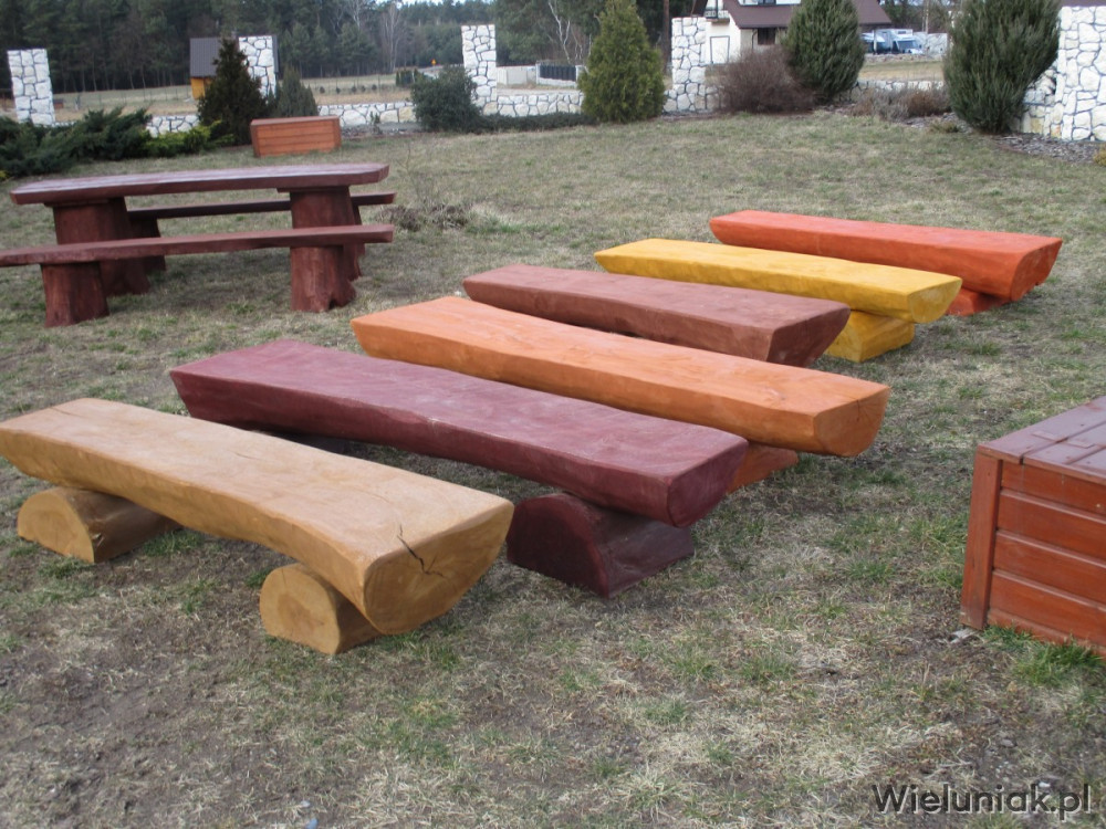 Przedmiotem aukcji jest ławka ogrodowa z bali długości 200 cm wysokości siedziska 40 cm z połowy pnia o średnicy ok 45 cm (szerokość siedziska)
