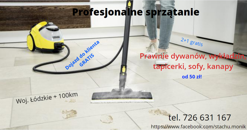 Proponuję Państwu pranie, czyszczenie dywanów, wykładzin dywanowych i tapicerki sprzętem i środkami firmy Karcher. Jest to stara niemiecka firma zajmująca się produkcją profesjonalnych artykułów branży czystościowej.