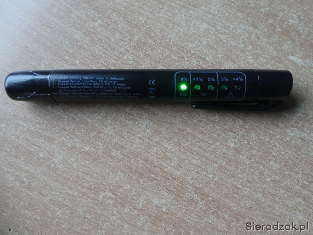 Oferuję do sprzedaży próbnik do pomiaru zawilgocenia płynu hamulcowego. Próbnik jest nowy, nie używany. Wymaga baterii typu AAA (mały paluszek). Bateria nie jest w komplecie trzeba ją samodzielnie dokupić.