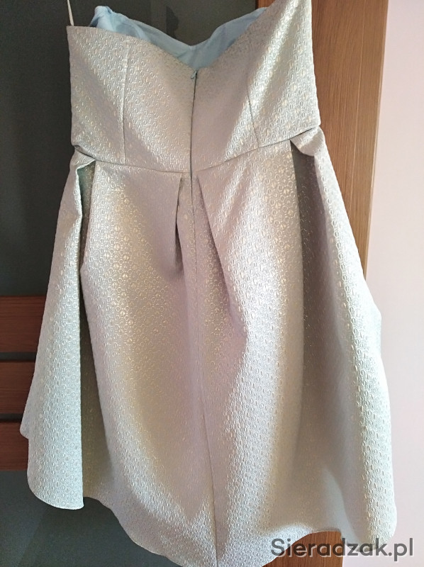 Sukienka czysta, bez zniszczeń. Założona na jedną okazję. Materiał lekko błyszczący. Dla osoby w rozmiarze 30/40.