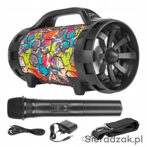 Duży Głośnik bezprzewodowy do karaoke z mikrofonem bezprzewodowym i mikrofonem na kablu gratis.