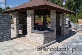 Altanę z bloczków łupanych w różnych kolorach