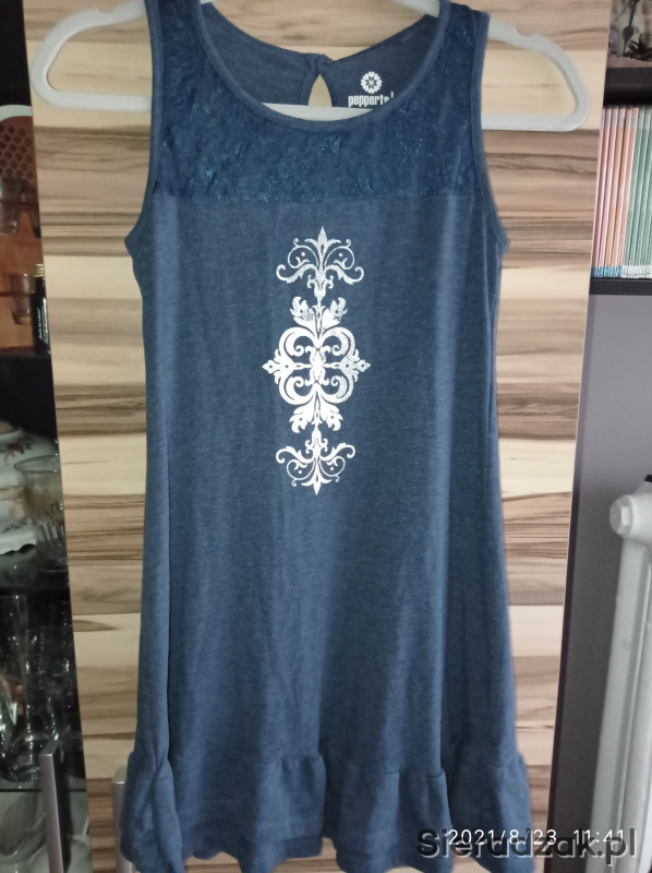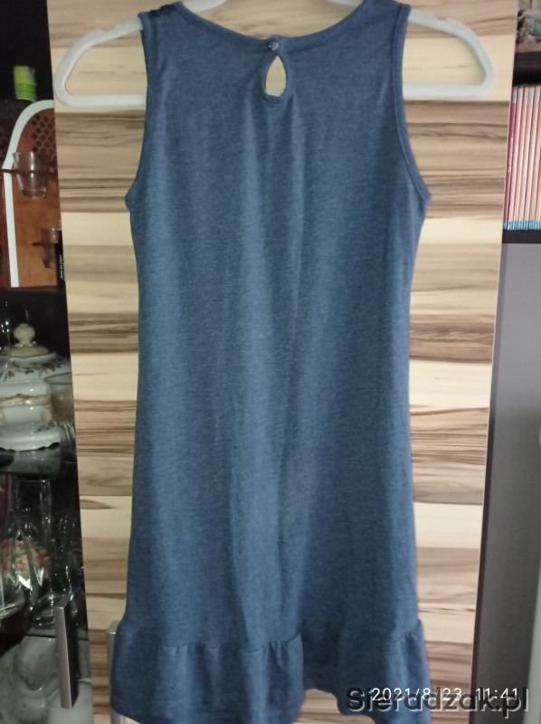 Sukienka dziewczęca granatowa rozm. 146/152. Długość 77cm. Szerokość pod pachami 40cm