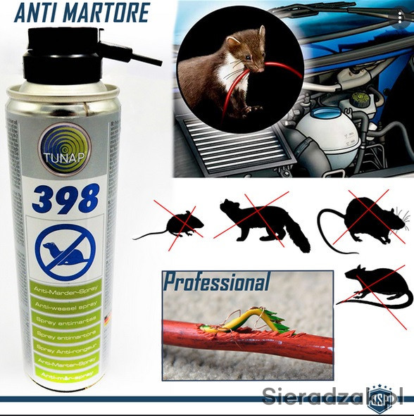 Odstraszacz kun do samochodu TUNAP 398 jest częściowo syntetycznym środkiem natłuszczającym o długotrwałym działaniu. Produkt jest nieszkodliwy dla zwierząt.