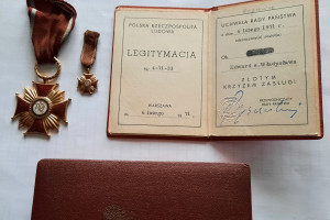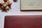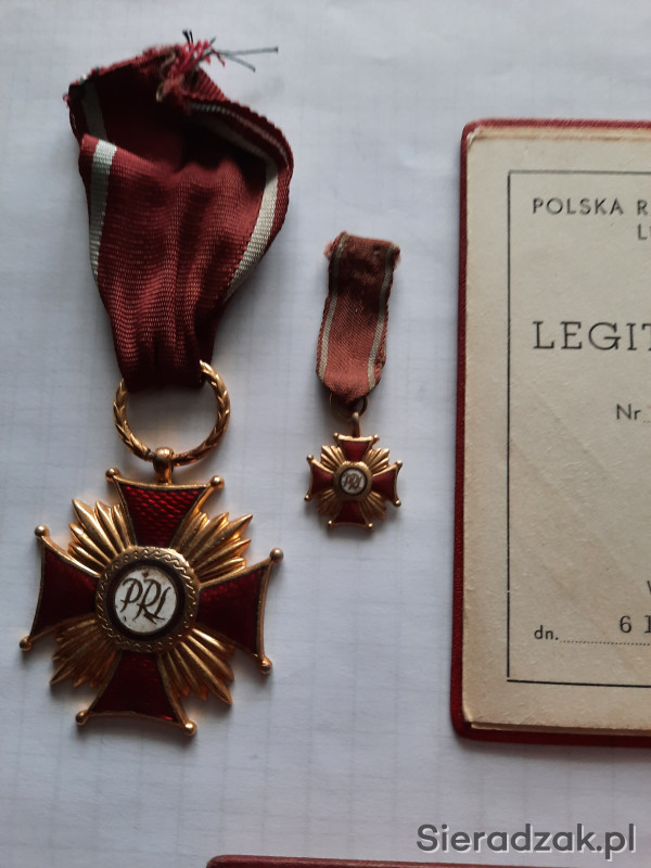 Złoty krzyż zasługi. Komplet - z miniaturką, wstążkami, etui i legitymacją z 1971r.