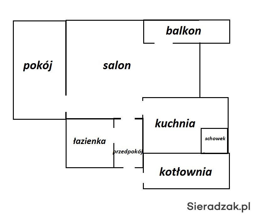 Do wynajęcia mieszkanie o pow. 45,77m2 plus balkon, w bloku na 2 piętrze, znajdujące się w miejscowości Niechmirów w gminie Burzenin.