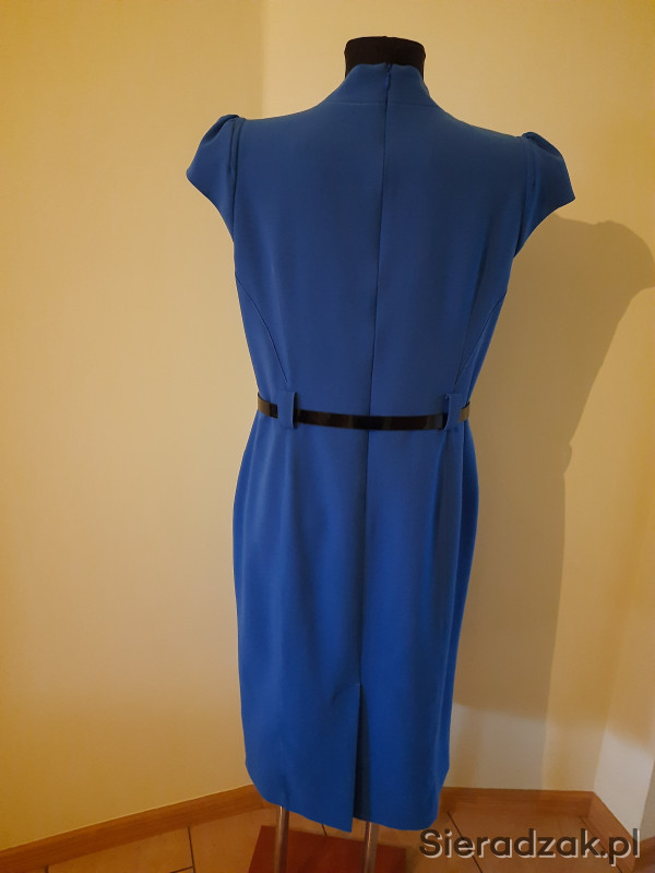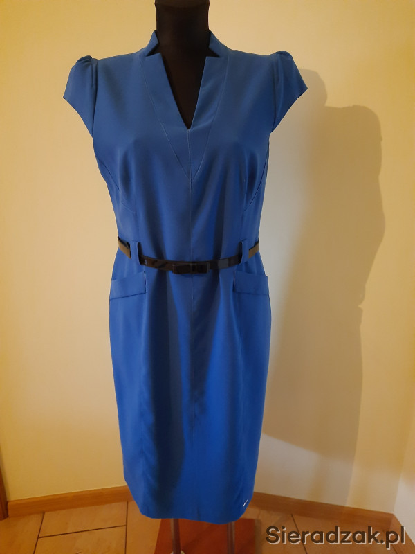 Sukienka z paskiem firmy MONNARI, za kolana w kolorze intensywnym niebieskim z podszewką , rozmiar 44. Tkanina miękka i przyjemna w dotyku, sukienka dobrze dopasowana zaszewkami, czysta, używana okazjonalnie. Polecam!