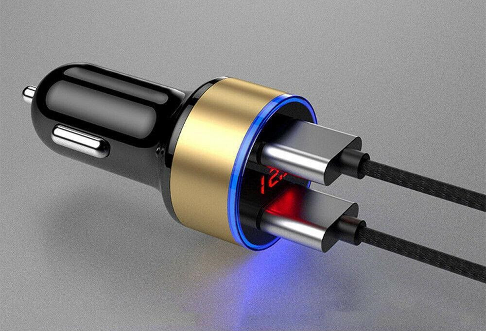 Oferuję do sprzedaży nowe ładowarki do gniazda zapalniczki samochodowej z dwoma portami USB i wyświetlaczem napięcia akumulatora.