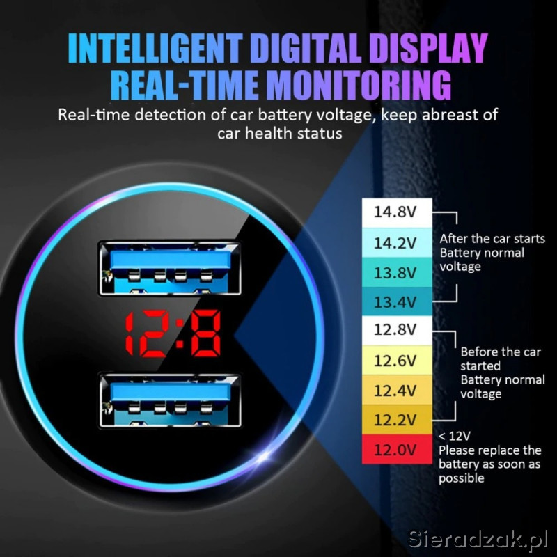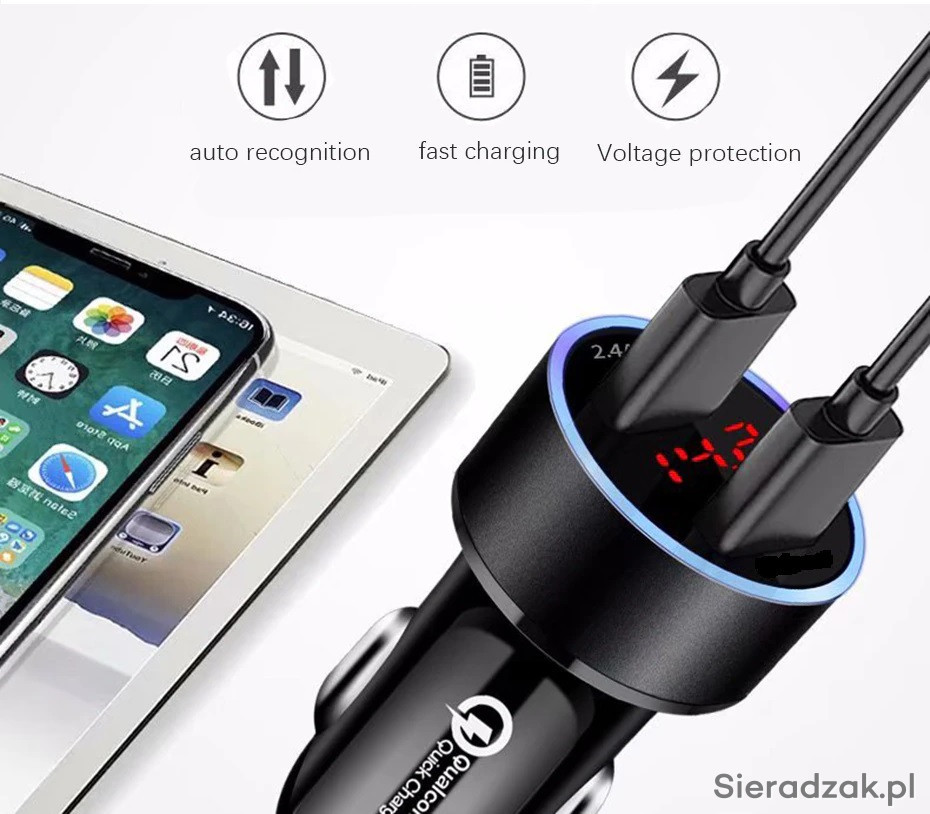 3. Dwa Porty USB można ładować jednocześnie 2 telefony, telefon i tablet lub telefon i nawigację, itp.