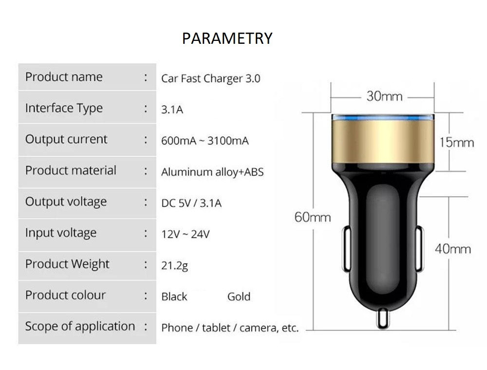 3. Podwójne Wyjście USB: 5V DC / 2.4A ; 3.1A