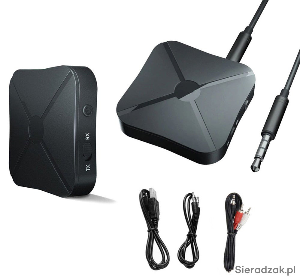 Odbiornik i Nadajnik dźwięku Bluetooth umożliwiający bezprzewodowy odbiór muzyki za pośrednictwem funkcji Bluetooth lub poprzez adapter AUX dołączony w zestawie. Niezwykle mały i poręczny oraz prosty w obsłudze.