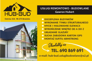 FIRMA HUB-BUD Usługi Remontowo- Budowlane Gawron Hubert zatrudni do pracy osoby z doświadczeniem w pracach budowlanych: