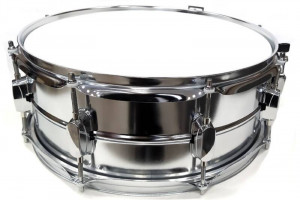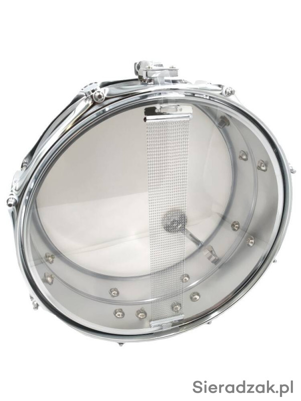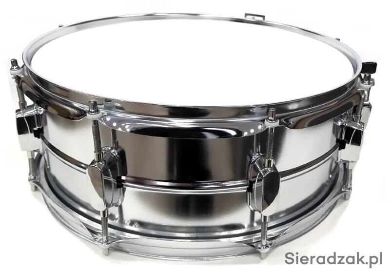Werbel perkusyjny stalowy z wysokiej chromowanej stali w komplecie z pałkami.