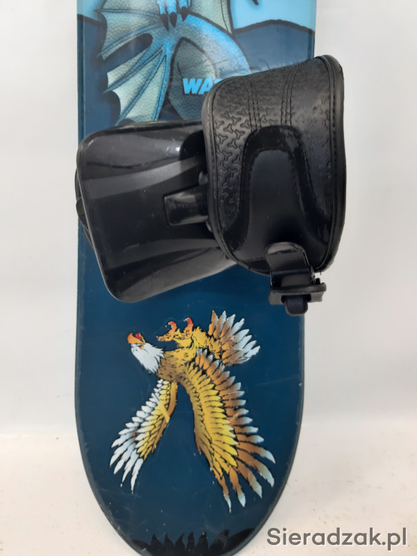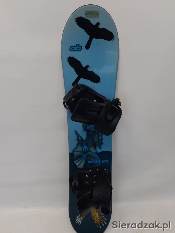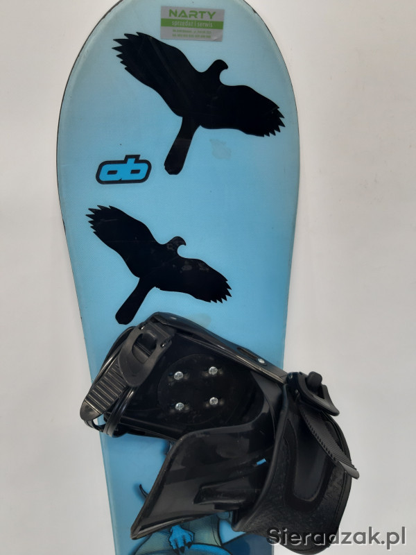 używana dziecięca deska snowboardowa o długości 121cm z wiązaniami.stan dobry.nasmarowana i naostrzona.