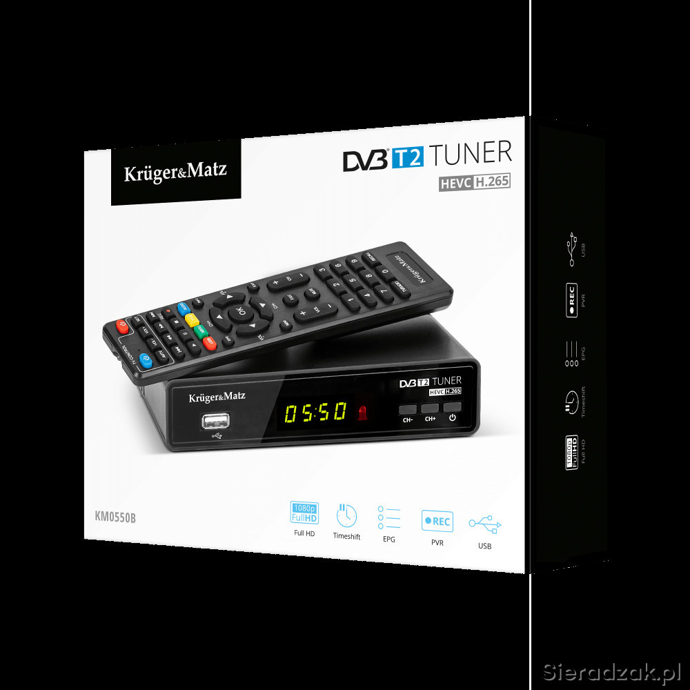 Model KM0550 marki Kruger&Matz z procesorem GX6702S5, który umożliwia odbiór kanałów cyfrowych w standardzie DVB-T i DVB-T2. Co więcej, tuner dvb s Kruger&Matz obsługuje wiele formatów, m.in. H.265 HEVC, dzięki czemu gwarantuje prawidłowe działanie po wprowadzeniu zmian standardu kodowania.