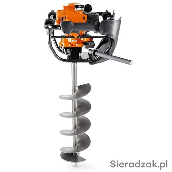 Profesjonaly świder do trudnych wyzwań. Wiertnica spalinowa ma zamontowane wiertło glebowe o średnicy 300mm.