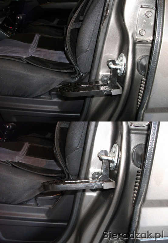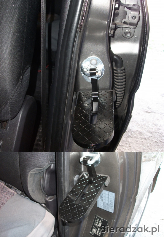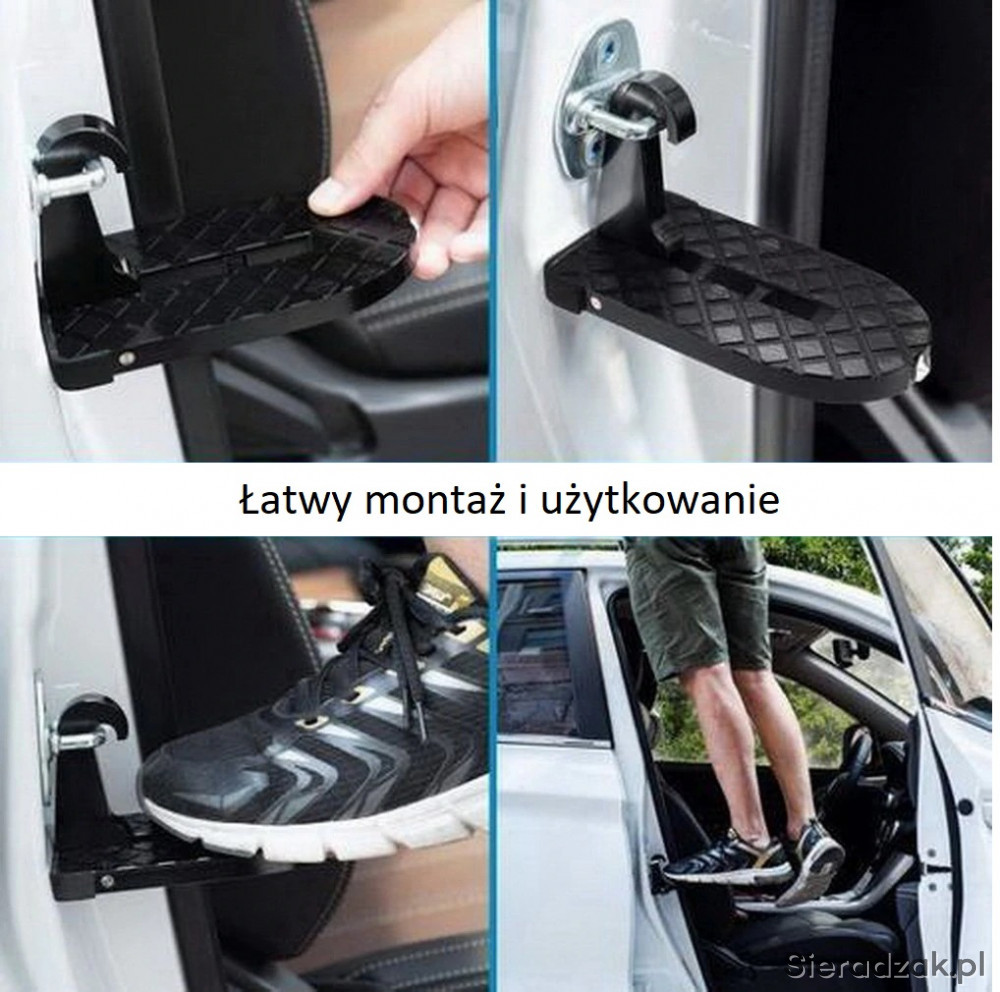 Oferuję uniwersalny podnóżek, stopień zaczepiany o rygiel drzwiowy na słupku samochodu. Łatwy w instalacji, innowacyjny projekt, służy do dostania się na dach pojazdu i jego załadunek lub umycie itp.