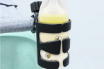 Uchwyt jest sprężysty i samoistnie zaciska się na butelce lub innym włożonym pojemniku.
