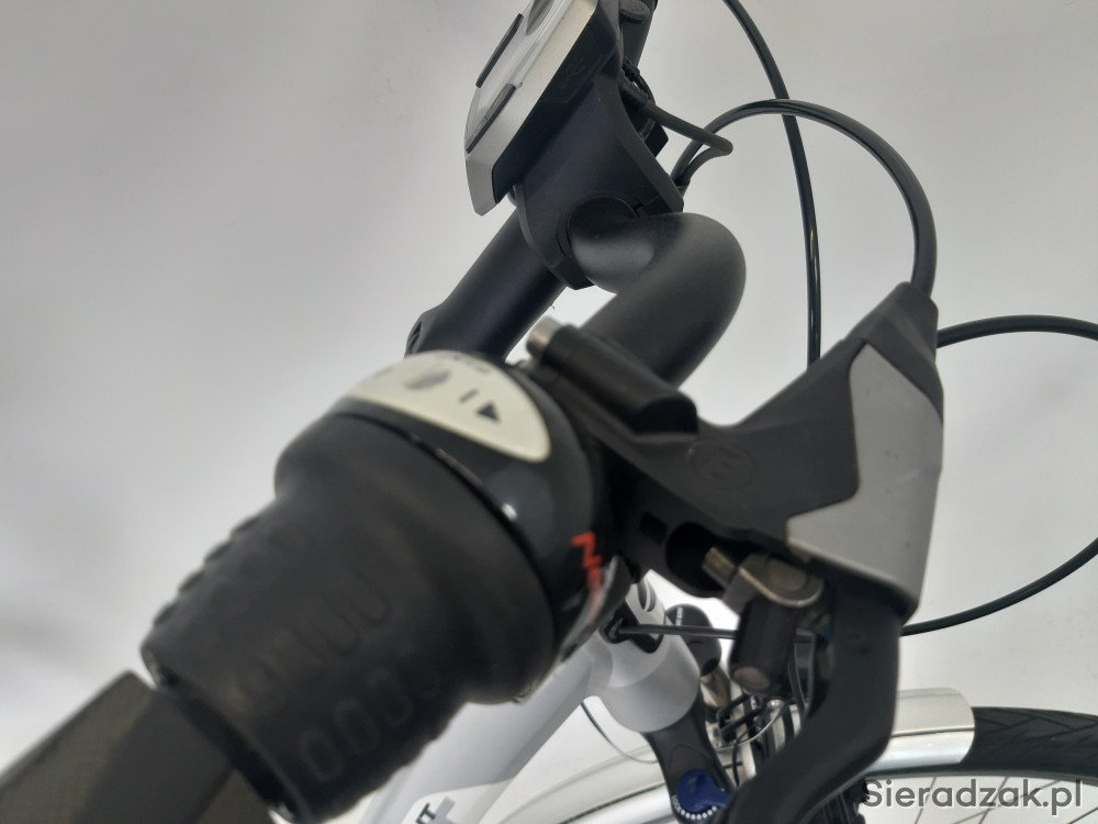 rama aluminium 20" 50cm,przerzutka 7-biegowa shimano nexus w tylnej piaście,hamulce hydrauliczne magura hs11,dynamo shimano w przednim kole,mostek regulowany,siodełko volare z amortyzowaną sztycą podsiodłową,amortyzator twist elegance z blokadą skoku,opony schwalbe plus.stan technczny bardzo dobry,wizualnie niewielkie ślady użytkowania.