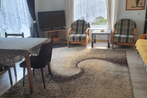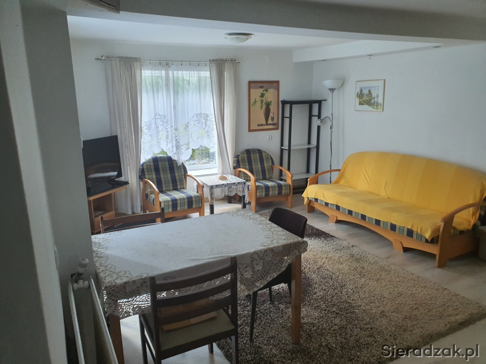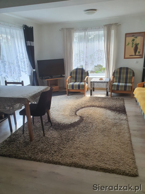 Dwa pokoje w tym pokój z kominkiem,łazienka,kuchnia,przedpokój Bezpośrednie wyjście na ogród z zadaszonym tarasem.