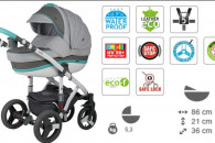 Wózek Vicco 2w1 oprócz amortyzowanej osi tylnej wyposażyliśmy w centralny amortyzator z możliwością jego zablokowania. Wózek posiada gumowe koła bezdętkowe (żelowe), które podnoszą komfort jazdy i ułatwiają eksploatację, gdyż nie wymagają zmiany i pompowania dętek. Przednie koła posiadają amortyzację przeciwzderzeniową. Wózek jest zwrotny i stabilny zarówno w przestrzeni miejskiej jak i na drogach gruntowych. Tapicerka budki gondoli i siedziska spacerowego posiada duże okno wentylacyjne oraz rozkładany daszek przeciwsłoneczny. Pokrowiec posiada okno, które pozwala utrzymać stały kontakt wzrokowy z dzieckiem. Na wyposażeniu znajdują się pokrowce na nóżki, moskitiera, folia przeciwdeszczowa, torba na akcesoria i uchwyt na kubek.